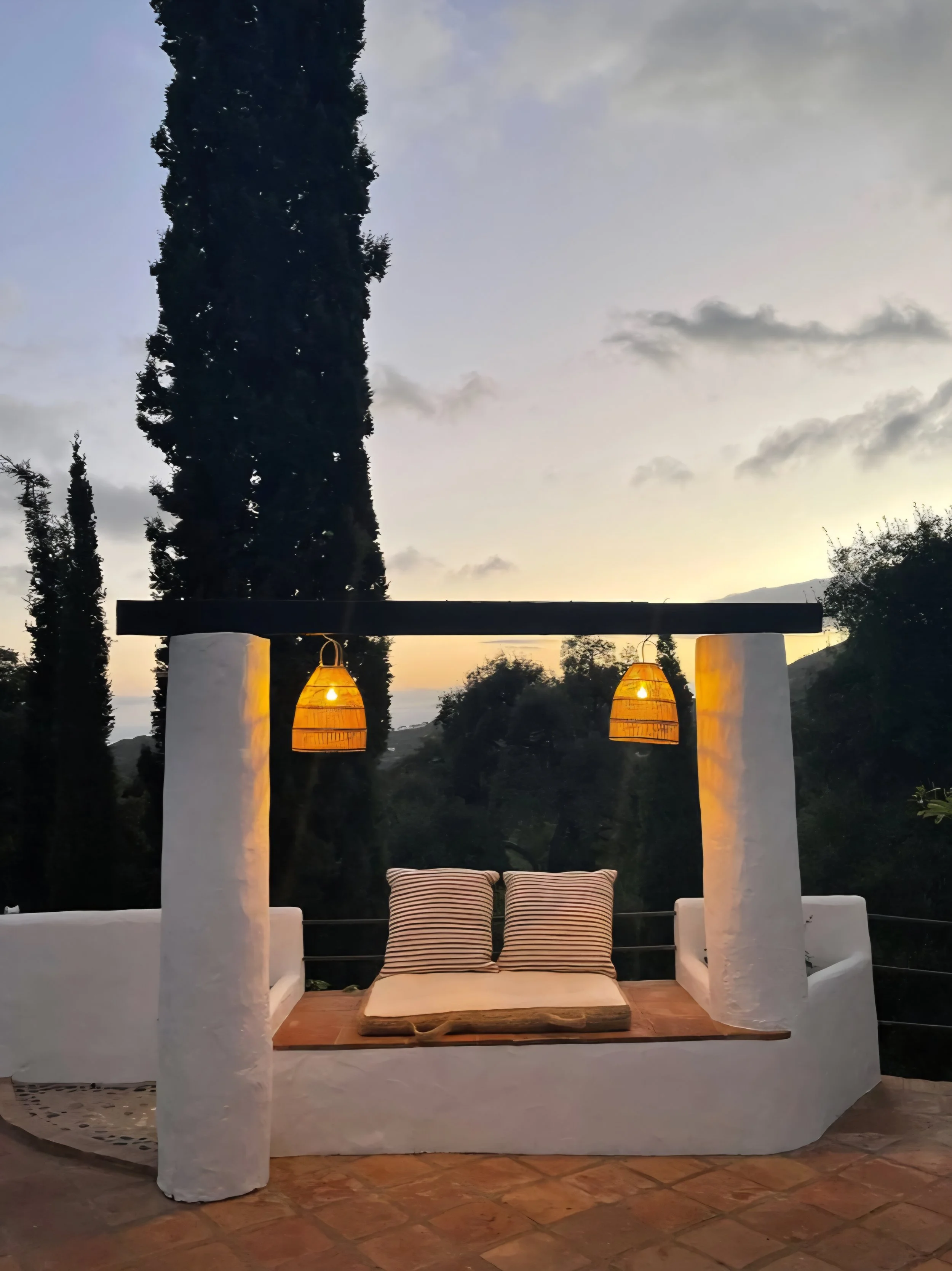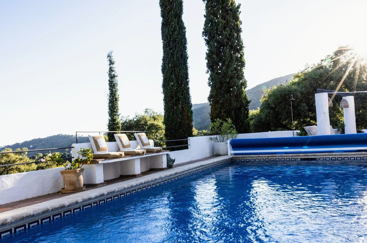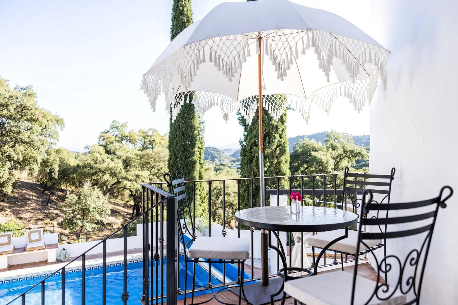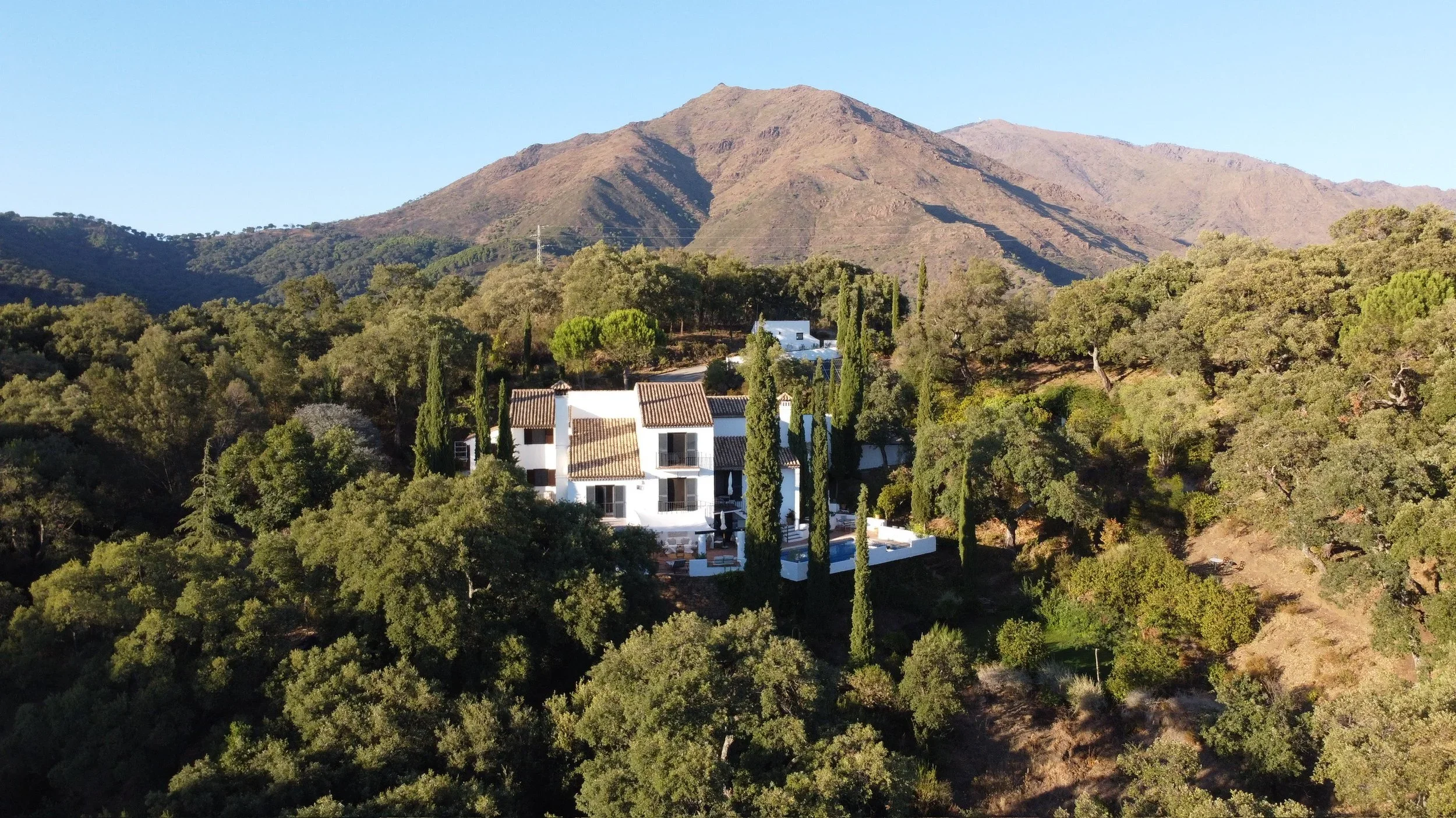 Majoitumme kauniissa villassa, luonnon ympäröimänä. Terassilta avautuvat upeat näkymät vuorille ja Gibraltarille.